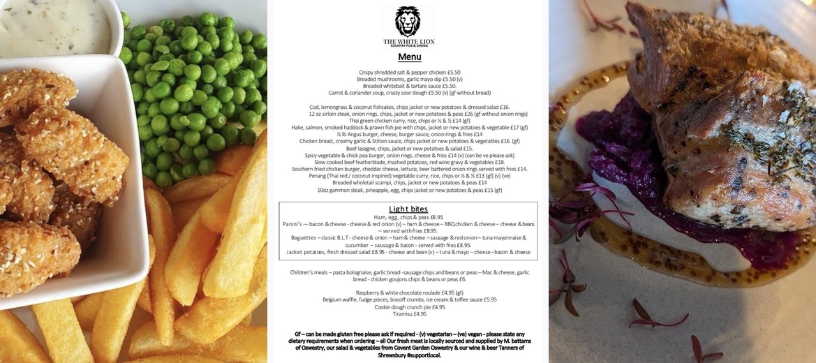Discover The White Lion in Llynclys, Oswestry – your perfect pub for delicious belly pork, gammon, and fresh fish cakes. Enjoy a selection of real ales and draught beer in our inviting beer garden. Dog-friendly and ideal for a cozy meal with friends or family. Visit us today!
